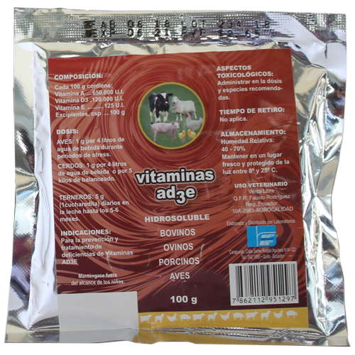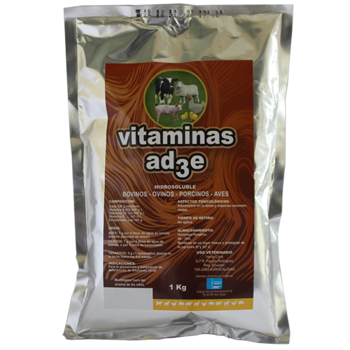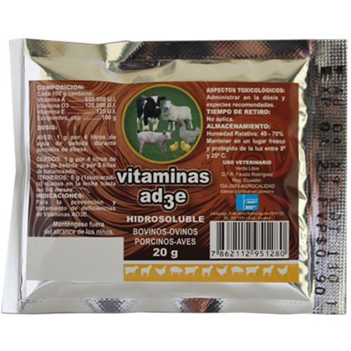 A la par la deficiencia de Vitamina E produce alteraciones como: Distrofias, miopatías, deformaciones musculares, alteraciones en el movimiento, trastornos en la fertilidad, alteraciones del sistema nervioso y circulatorio, encefalomalacia, alteraciones del hígado. El complejo multivitamínico AD₃E, polvo soluble, previene estas alteraciones.
