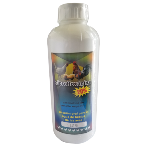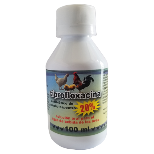 INDICACIONES: Está indicado para ser utilizado en casos de desórdenes infecciosos respiratorios de las aves. Complicacio- nes bacterianas graves de la enfermedad respiratoria crónica, Micoplasmosis, Coriza infecciosa, complicaciones bacterianas del síndrome de cabeza hinchada, e intestinales, ocasionadas por mi- croorganismos Gram positivos, Gram negativos y Micoplasmas, susceptibles a la Ciprofloxacina.