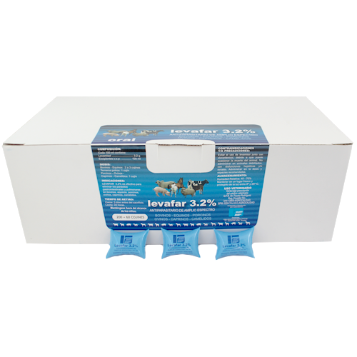 INDICACIONES: LEVAFAR 3.2% es efectivo para eliminar los parásitos gastrointestinales y pulmonares en bovinos, ovinos y porcinos.