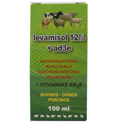CARACTERÍSTICAS: LEVAMISOL + AD₃E es un antihelmíntico de amplio espectro indicado para el control eficaz de parásitos gastrointestinales y pulmonares, aportando a la vez las vitaminas esenciales para el crecimiento, evitar alteraciones en piel y mucosas y corrección de deficiencias reproductivas.