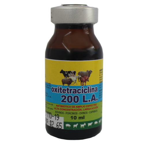 lución estéril estable de altísima concentración, ideada para man- tener niveles terapéuticos por un período de 3 a 5 días, después de una sola aplicación. Además de la alta concentración, dosis reducida y el anestésico incorporado, facilita la inoculación y dis- minuye las molestias a los animales. El efecto bacteriostático de amplio espectro más su calidad atóxica en general, asegura un tratamiento adecuado contra un sinnúmero de enfermedades bac- terianas. Después de la inoculación parenteral, la OXITETRACI- CLINA penetra rápidamente en la sangre y tejidos produciendo altas concentraciones en los mismos. Además los niveles terapéu- ticos del producto permanecen en el torrente sanguíneo por tiem- po prolongado en consecuencia, una inyección cada 48-72 horas es suficiente.