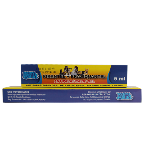DESCRIPCIÓN: Suspensión oral que combina la acción de dos antiparasitarios en una sola dosis. Actúa contra las formas ma- duras e inmaduras de nemátodos y céstodos en perros y gatos. El pamoato de pirantel tiene poca absorción en el tracto digestivo y produce la muerte de los helmintos que entran en contacto con él. El praziquantel controla tenias en perros y gatos debido a su absorción y rápida llegada a los sitios donde se localizan las larvas migrantes.